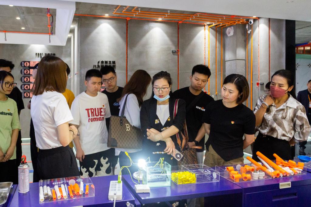 在业之峰装饰有限公司,参观开始前,讲解员向在场师生介绍了公司组织架构,发展历程、企业愿景、使命、价值观、获得的荣誉及楼层布局、参观顺序,让师生对整个参观活动有大致的了解。师生跟随讲解员随后依次参观了该集团的各个展区。设计师耐心细致讲解了整个装饰的流程,特别强调了水电装修中的重要性,让师生们感受到细致入微的工作和体贴的服务是留住客户的关键。