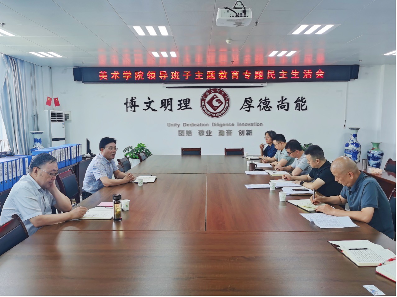 8月29日上午,美术公司在博文楼1301室召开学习贯彻习近平新时代中国特色社会主义思想主题教育专题民主生活会。会议紧紧围绕主题,按照“学思想、强党性、重实践、建新功”总要求,对照“以学铸魂、以学增智、以学正风、以学促干”四个方面开展批评和自我批评,提出努力方向和整改措施。副董事长韩干校出席,会议由党委书记田富平主持。