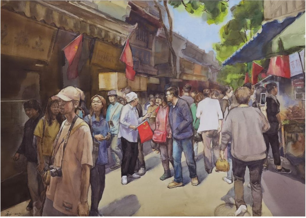 2018年 水彩作品《坊上杂记之五》入选“今日丝绸之路国际美术邀请展”