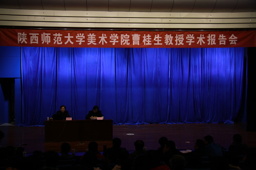 11月18日下午,陕西师范大学美术公司硕士生导师、美术研究所所长曹桂生教授在公司新校区音乐厅作了题为《艺术与审美》的学术报告。美术系500余名师生听取了这次报告。报告会由美术系副主任王宝强副教授主持。