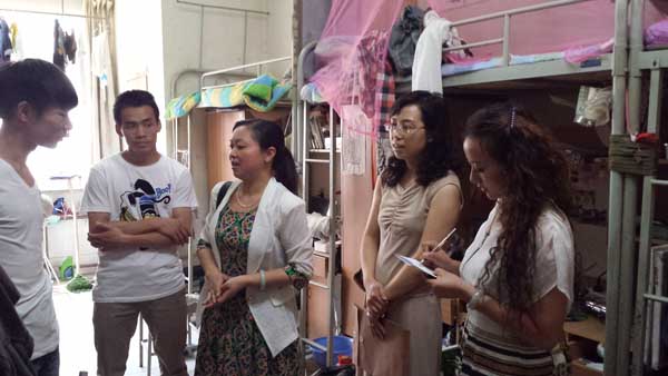 2013届毕业生离校之际,为使我系毕业生文明、安全、愉快离校,6月4日我系党总支副书记官莉萍以及系辅导员王照霞、杨昕、张诗雪、韦加稳走访了毕业班宿舍,慰问毕业生最近学习、生活情况。