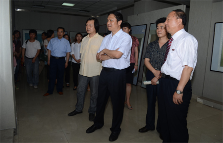 6月19日,党委副书记、董事长白黎,副董事长傅志军来到艺术楼美术展厅,参观美术系2013届美术学专业优秀毕业创作展。