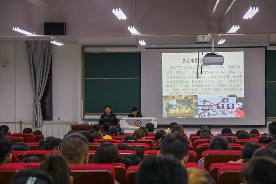 闫拴麟以“平安是人生之根本”为切入点,结合自己30余年工作经验和人生感悟,重点列举了近年来各高校发生的的人身侵害、交通事故、传销、黄赌毒、校园贷、电信诈骗、校园欺凌、火灾事故等各类真实案例,深入分析了校园安全事件和违法犯罪行为产生的背景及危害。他希望同学们加强对法律知识的学习,培养规则意识,紧绷安全之弦,远离违法犯罪,学会用法律手段维护自身合法权益。
