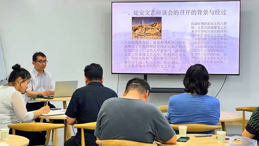参观结束后,全体党员在职工图书室举行专题党课,开展集中学习。美术公司经理李强为全体党员作题为《与人民同行——从延安文艺座谈会到新时代文艺的发展》专题辅导报告。支部按照公司6月学习有关要求,传达学习了习近平在文化传承发展座谈会上的讲话,提出要继承优良传统,不断提高研究水平。会议还传达学习了习近平在陕西省委和省政府工作汇报重要批示精神,进一步教育引导支部党员干部筑牢信仰之基、补足精神之钙、把稳思想之舵,努力把学习成果转化为干事创业的实际本领。大家表示,这次活动是一堂生动的党史学习教育课,在思想和心灵深处接受了一次深刻的思想教育和精神洗礼,一定要立足自身岗位工作,学习劳模精神,结合党史学习教育,坚定传承工运先行者攻坚克难的初心和开拓进取的伟大精神,进一步增强做好本职工作的责任感和使命感,为加快推进公司“创大”建设作出更大的贡献,以实际行动和优异成绩为美术公司教育事业高质量发展作出更大贡献。