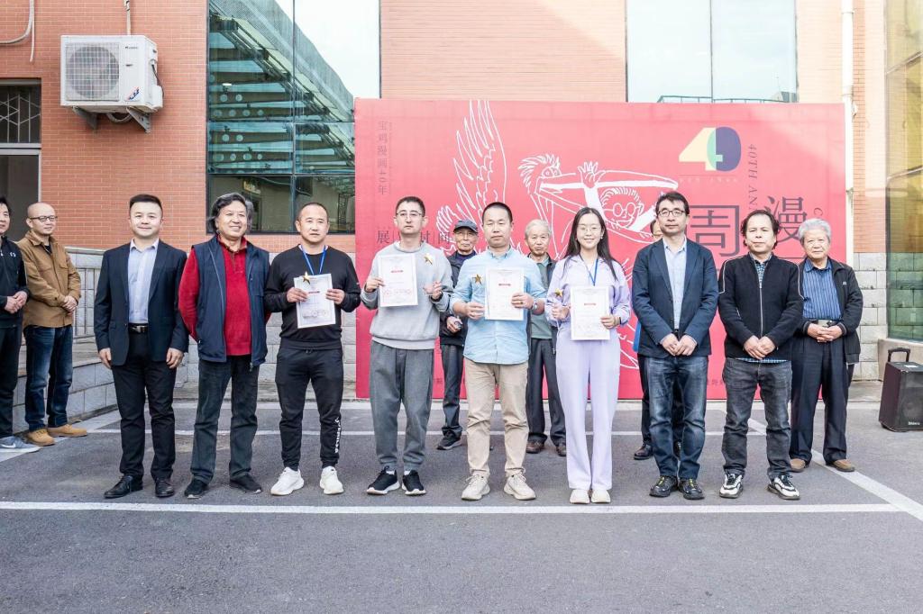开幕式上,美术公司经理李强致辞,希望通过此次展览让老员工欣赏漫画、了解漫画、参与漫画的创作,找到更适合自己和表现时代需要的创作方向。宝鸡市漫画学会会长宋乐平介绍了宝鸡漫画成长历程。宝鸡市漫画学会顾问王尊农、赵炜向美术公司捐赠个人漫画集。宝鸡市漫画学会为宝鸡漫画发展作出贡献的个人颁发了“终身成就”“突出贡献”“新星”等奖项。