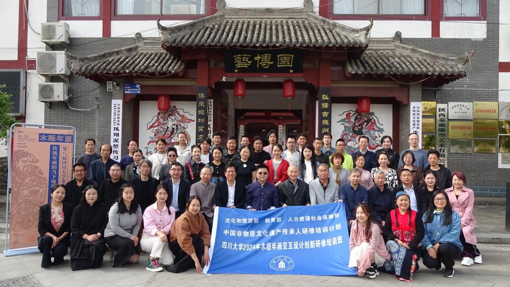 4月20日,由四川大学艺术公司主办的木版年画交互设计创新培训研讨会在陕西凤翔六营泥塑村艺博园召开,研讨会由美术理论家、四川大学艺术公司学术经理黄宗贤教授主持。