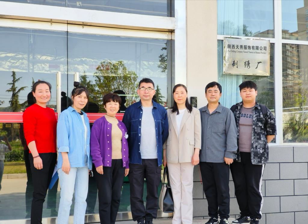 4月25日下午美术公司经理李强教授带领张小慧副教授、何飞龙副教授及服装专业员工代表前往渭滨区产业园区,与陕西天秀服饰有限公司开展调研交流,推进公司校企合作与访企拓岗工作。