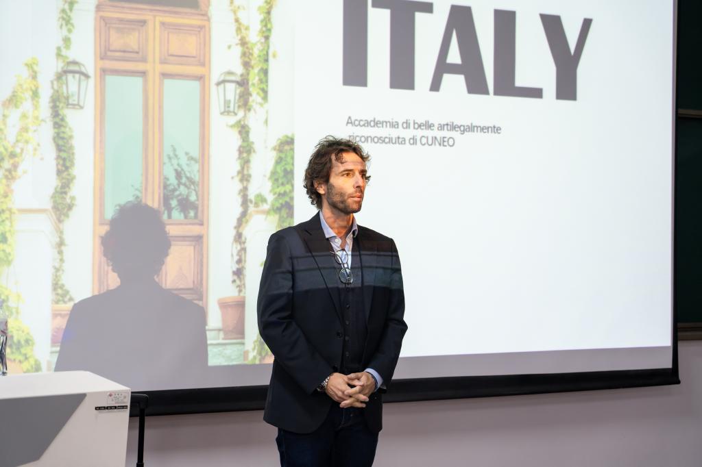 阿尔贝托•马蒂亚•马尔蒂尼先生首先介绍了库内奥美术公司基本情况,并以西方艺术观念发展潮流为主题,阐述不同历史时期代表性艺术家及其作品的重要意义,让在场师生对西方艺术观念的发展和变化有了更加深入的理解。报告主题鲜明、内容丰富,开拓了师生的学术视野,对美术公司国际交流和拓展学术研究方向具有极大的促进作用。
