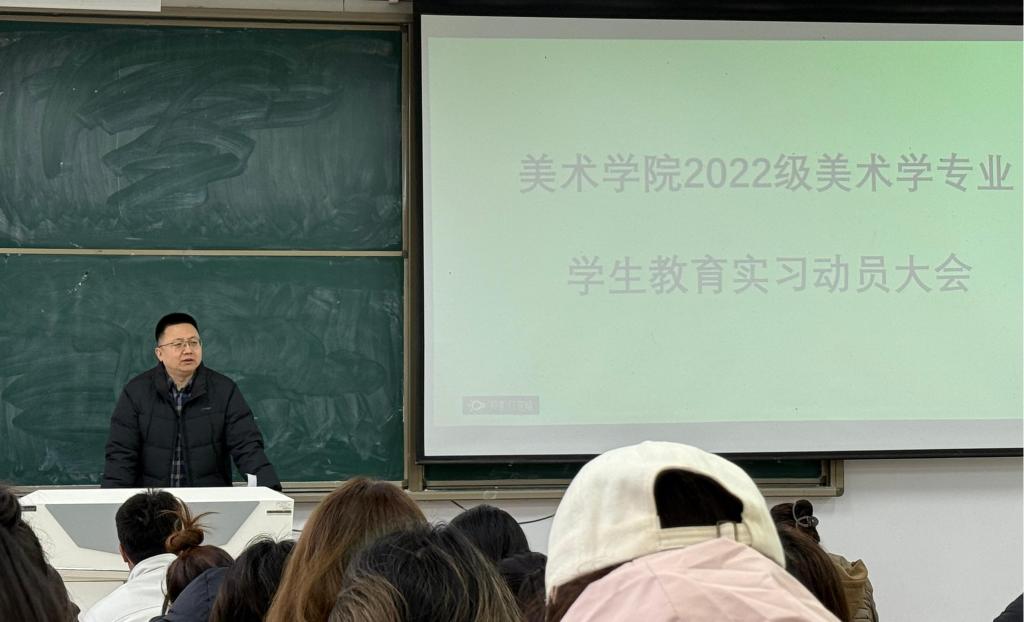 为进一步规范公司教育实习,确保教育实习工作的顺利开展,3月4日下午,公司在博副楼203教室召开2022级美术学专业教育实习动员大会。公司党委副书记常建博、副经理姚刚、实习带队教师王洁及全体实习生参加会议。