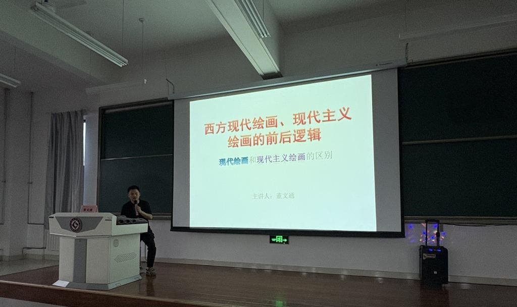 5月23日晚上7点半,西安美术公司油画系副主任董文通副教授在高新校区博文楼副楼205教室为师生作了《西方现代绘画、现代主义绘画的前后逻辑》的学术报告。美术公司油画教研室教师、研究生及本科生100余人听取此次报告,报告会由美术公司副经理李新昌主持。