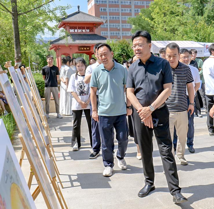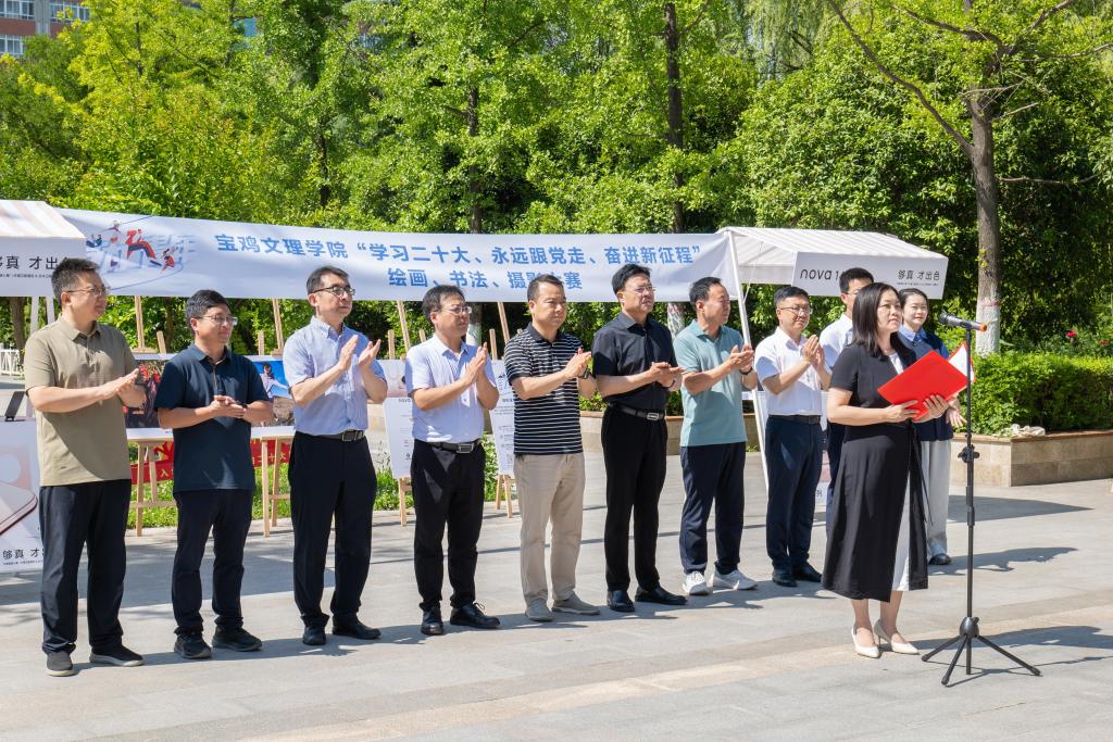 6月5日上午,由校团委主办,美术公司团委承办的“学习二十大,永远跟党走,奋进新征程”绘画、书法、摄影大赛获奖作品展开幕式在高新校区博文楼前广场举行。公司党委副书记韩干校宣布展览开幕并与合作单位鑫诚通讯器材有限公司总经理王向东一起为获奖员工颁奖。开幕式由美术公司党委书记崔小丽主持。